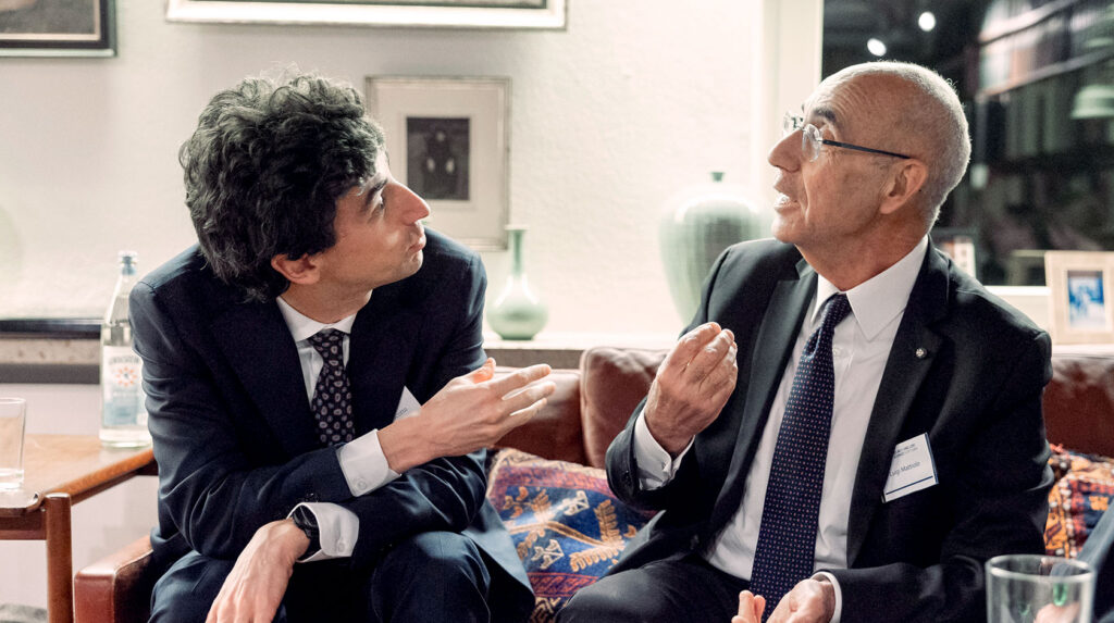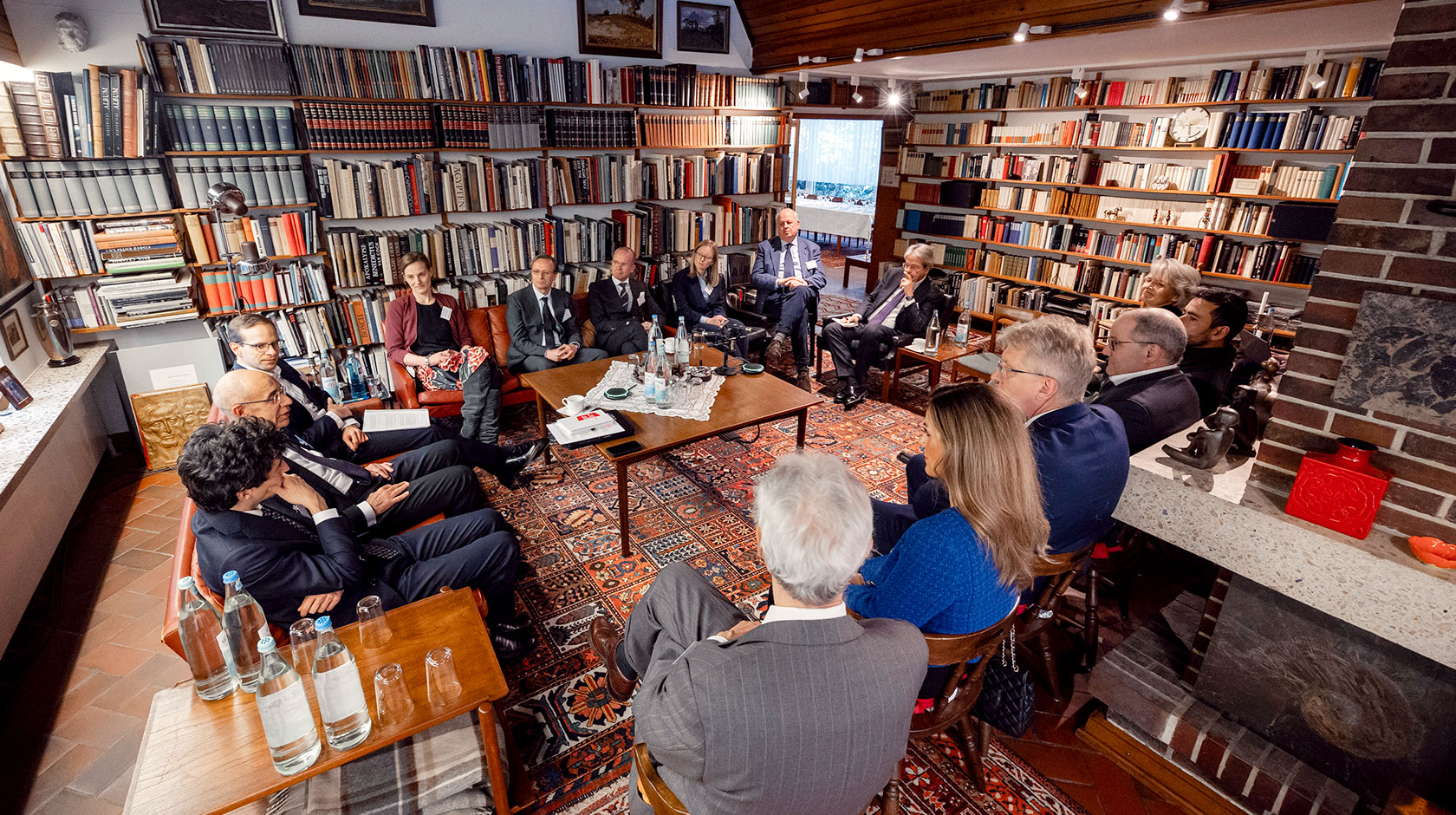 Am Abend, bevor der ehemalige italienische Premierminister und EU-Kommissar Paolo Gentiloni an der Universität Hamburg die diesjährige Hamburger Rede zur Zukunft Europas hielt, war er zu Gast im Haus von Helmut und Loki Schmidt. Gemeinsam mit hochrangigen Vertreterinnen und Vertretern unterschiedlicher Disziplinen tauschte er sich beim Schmidt-Gespräch Nummer 8 über die ökonomischen Zukunft Europas aus. An der Diskussion im legendären Wohnzimmer der Schmidts beteiligten sich – moderiert von ZEIT-Redakteur Marc Widmann – unter anderem die Hamburger Staatsräte Jan Pörksen und Dr. Christopher Schwieger, der Präsident der Villa Vigoni und ehemalige italienische Botschafter Luigi Mattiolo, die Präsidentin des Verbands Deutscher Reeder Dr. Gaby Bornheim sowie Professor Dr. Markus Kotzur, Präsident des Europa-Kollegs Hamburg.